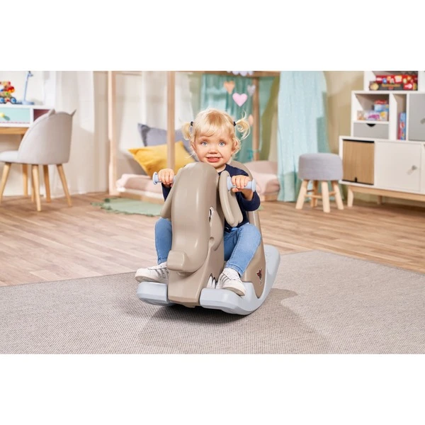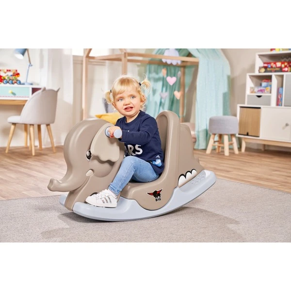 | Inhalt/Ausstattung | Schaukel-Elefant mit rutschfester und breiter Fußauflage, ergonomischen Griffen, beweglichen Ohren | ||