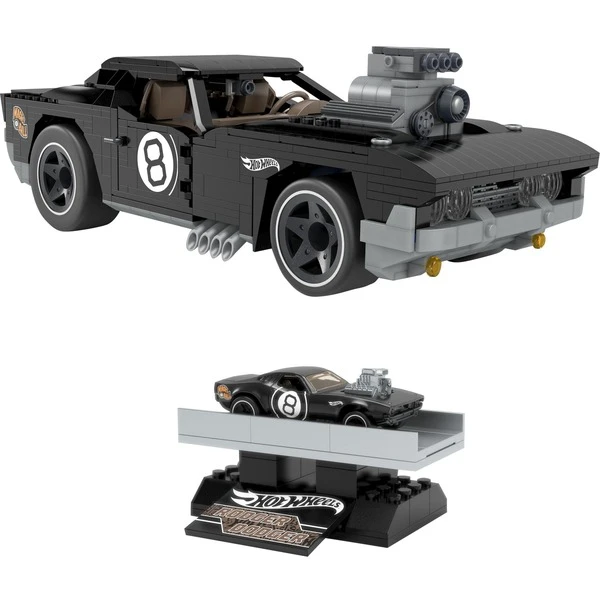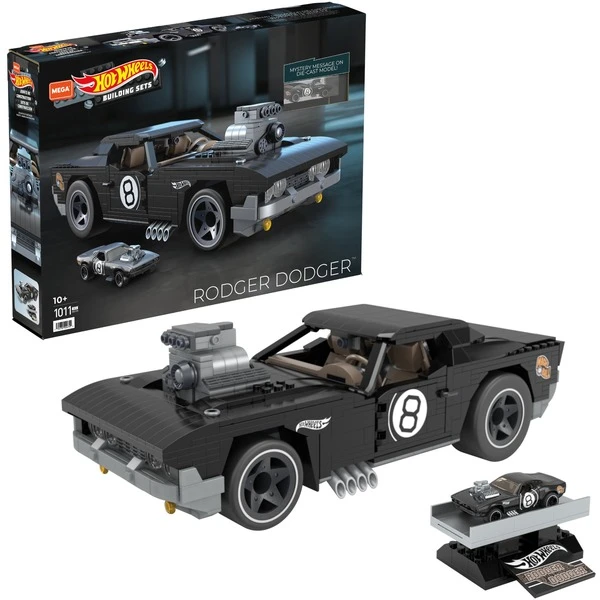 Dieser Rodger Dodger in der Sonderedition ist die Krönung jedes Sammlerregals. Der große Racer fasziniert durch authentische Details wie einem Kofferraum, der sich öffnen lässt, um den Blick auf eine Lachgasvorrichtung freizugeben, einer abnehmbaren Motorhaube und einem abnehmbaren Motor sowie einer schicken Lackierung in Magic-8-Ball-Optik. Das Set wird ergänzt durch ein klassisches Diecast-Modell mit Display-Ständer. Dieses legendäre Muscle Car ist auf der Straße ein echtes Monster, hier aber dient es vor allem dazu, richtig anzugeben. Perfekt für kreative Baumeister ab 10 Jahren.Art.-Nr.: 1806126