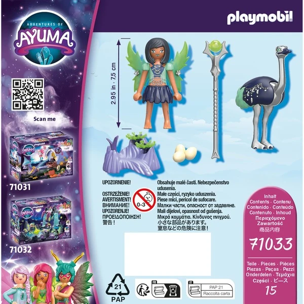 | Inhalt/Ausstattung | Figuren: 1 Moon Fairy Tiere: 1 Seelentier Strauß Zubehör: 1 Zauberstab, 1 Straußennest, 1 Straußeneier, 3 Blumen, 2 Blüten, 1 Paar Moon Fairy Flügel, 1 Moon-Fairy Rock, 2 Aufsteck-Sterne für Flügel | ||