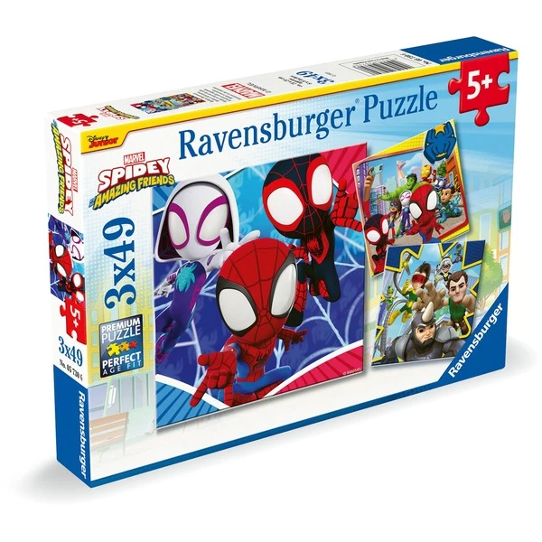 Die farbenfrohen Motive dieses Puzzlesets aus 3x 49 Teilen begeistern Kinder ab 5 Jahren. Mit dabei sind Mini-Poster als Vorlagen. Die Teile in altersgerechter Größe sind hochwertig verarbeitet, was langlebigen Puzzlespaß verspricht. Dieses Set enthält drei Puzzles mit Motiven aus Welt von Spidey und seinen Super-Freunden.Art.-Nr.: 100002437