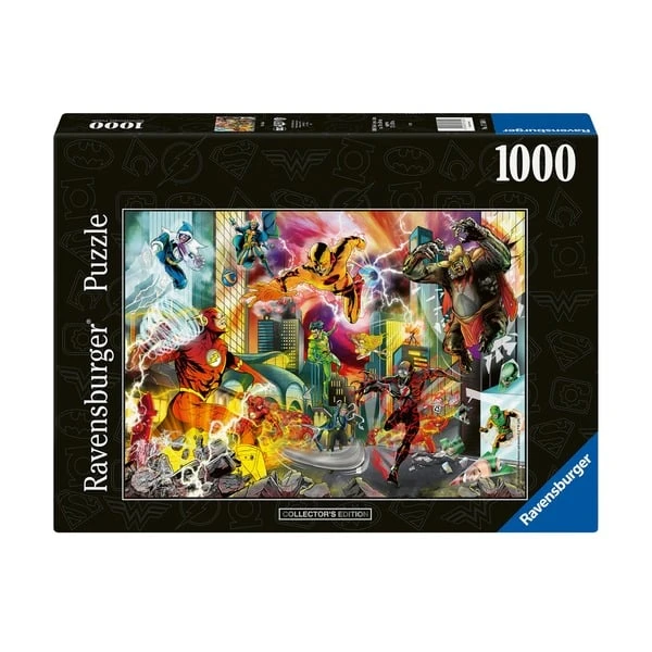 Ravensburger Puzzles bedeuteen Puzzlespaß in Premium-Qualität. Für Anfänger, Fortgeschrittene oder Profis – hier ist für jeden Puzzleliebhaber die richtige Teilezahl und das passende Motiv dabei. Dieses Puzzle aus der DC Comics Collection bietet ein tolles Motiv für Fans des Superhelden The Flash. Es hat 1000 Teile und ist fertig gebaut etwa 70 x 50 cm groß.Art.-Nr.: 1912764