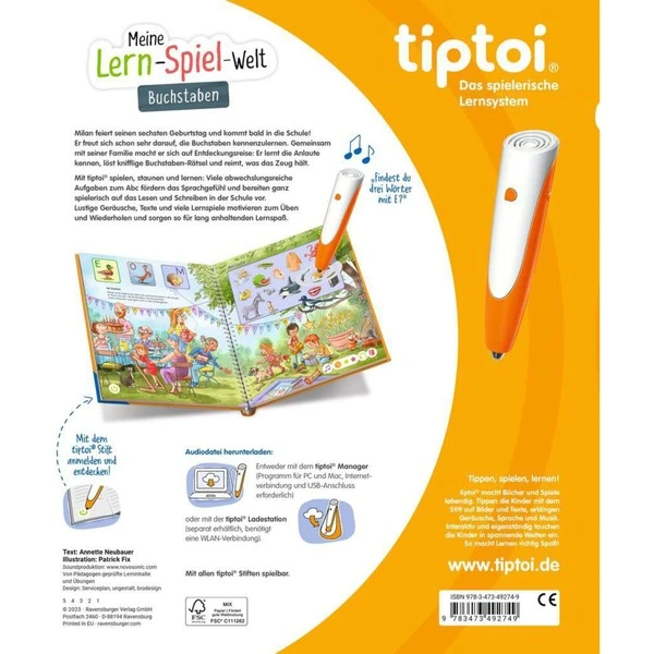 Mit der Reihe tiptoi Meine Lern-Spiel-Welt erarbeiten sich Kinder spielerisch, interaktiv und selbstständig die wichtigsten Lernthemen für das Vorschulalter. Mit Hilfe dieser Reihe können sie die Buchstaben und Anlaute kennenlernen, die Zahlen und erstes Rechnen üben oder ihre Konzentrationsfähigkeit verbessern. In jedem Buch gibt es über 20 knifflige und lustige Lernspiele in verschiedenen Schwierigkeitsstufen, mit abwechslungsreichen Aufgaben und kindgerechtem Feedback. In diesem Buch begleiten die Kinder Milan und seine Schwester Lena auf den Waldspielplatz, ins Naturkundemuseum, an den See und auf den Bauernhof. Dabei lernen sie die verschiedenen Buchstaben kennen. Sie üben das Hören von Lauten und die Verknüpfung von Laut und Buchstabe. So fördert tiptoi das Sprachgefühl und bereitet auf das Lesen und Schreiben vor.Art.-Nr.: 1895568