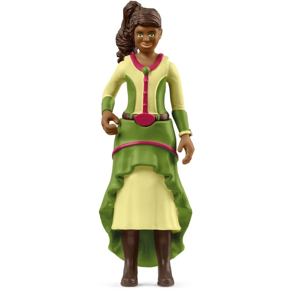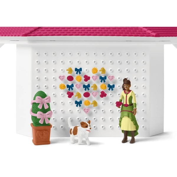 Auf Lakeside findet die Große Pferdeshow von Schleich Horse Club statt! Sarah und Tori putzen die Tennessee Walker Stute und den Lusitano Hengst mit Hufkratzer, Striegel und Bürste aus der Putzbox. Von der Rückwand der Arena holen sie Deko-Herzen, -Schleifen und -Blumen, um sie auf Zaumzeug, Körperriemen und Gamaschen zu stecken. Im Zelt machen sich die Mädchen vor ihren Spiegeln mit Lippenstift, Make-Up-Pinsel und -Dose aus ihrem Schminkkoffer hübsch. Draußen zieren Pflanzen, Schleifen, Rankenbögen, Spiralranken und Fahnen die Arena. Es ist Showtime! Sarah glättet ihren abnehmbaren Rock, Tori nimmt ihrem Pferd die Decke ab. Im Scheinwerferlicht führen sie die Pferde vom Paddock über den Teppich zum Tisch der Jury. Was wird auf den Wertungstafeln stehen? Zum Glück gibt es nur Gewinner, denn außer dem Pokal werden auch Siegerschleifen verliehen!Art.-Nr.: 1626452