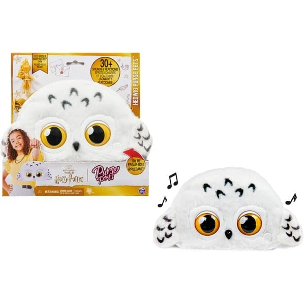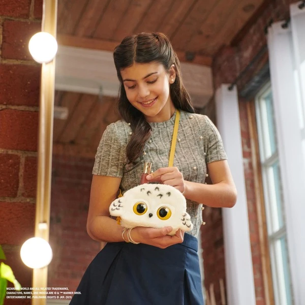 Diese bezaubernde und modische interaktive Schnee-Eulen-Tasche ist vollgepackt mit cleveren Funktionen, die die ikonische Harry-Potter-Eule direkt in Ihre Welt bringen. Hedwig reagiert auf deine Berührung, blinzelt richtig und hat über 30 magische Geräusche und Reaktionen. Entdecken Sie den weichen Plüschstoff und die Flügel von Hedwig, die ausdrucksstarken goldenen Augen, den verstellbaren Metallriemen und den Harry-Potter-Anhänger von Magical Mini in Gold, der am Riemen befestigt werden kann. Hedwigs Verzierungen und der 107 cm lange Riemen machen diese Umhängetasche zum perfekten Begleiter für Kinder und Harry-Potter-Fans jeden Alters. Wenn Sie sich auf bezaubernde Abenteuer begeben, blinkt Ihr Hedwig Purse Pet und macht Geräusche, während es mit Ihnen interagiert. Tippen Sie auf ihre Stirn, um das fröhliche Gurren und Heulen zu hören. Schalte weitere unterhaltsame Spielmöglichkeiten frei, indem du auf das Harry-Potter-Abzeichen tippst. Hedwig spielt ein Lied, wenn Sie sie vom Zaubermodus in den Flugmodus schalten. Tippen Sie auf ihre Stirn, um weitere Geräusche zu hören, und hören Sie, wie sie mit den Flügeln schlägt. Halten Sie Hedwig weiter und sie öffnet ihre Augen und antwortet mit klassischen Eulenlauten. Sie können Hedwig sogar füttern, indem Sie ihre Stirn berühren – Sie werden sofort wissen, wie sie ihr Essen mag. Mit Hedwig an Ihrer Seite können Sie Ihre Lieblingsszenen aus Harry Potter nachstellen. Öffne ihren Schnabel und platziere einen Brief. Ihr Schnabel öffnet und schließt sich mit einer Feder, und der Schnabel fungiert als Clip, damit sie den Brief wirklich halten kann. Art.-Nr.: 100008155